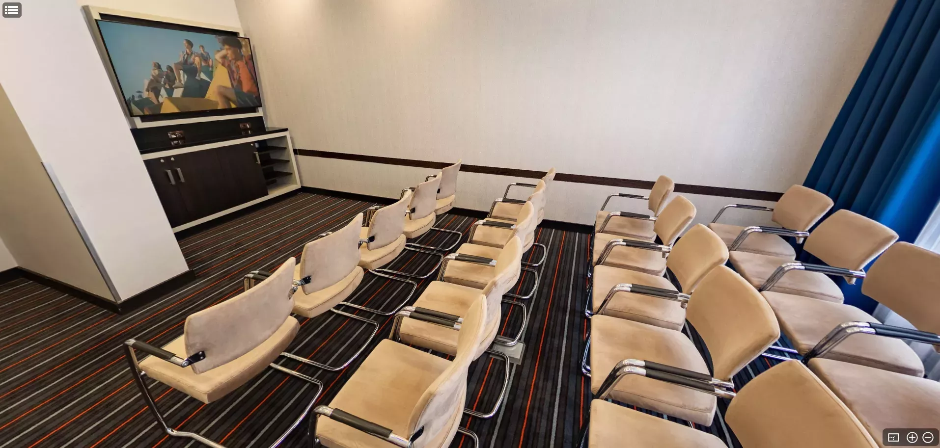 В переговорных комнатах, вместимостью до 20 человек, созданы все условия для проведения конференций, тренингов, семинаров и презентаций. Для участников мероприятий мы предлагаем организацию кофе-брейков, бизнес-ланчей, фуршетов